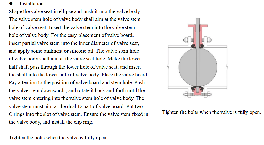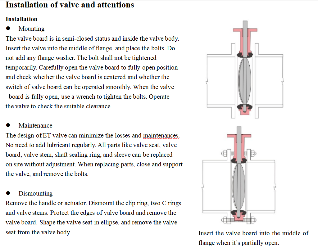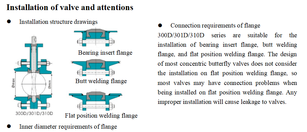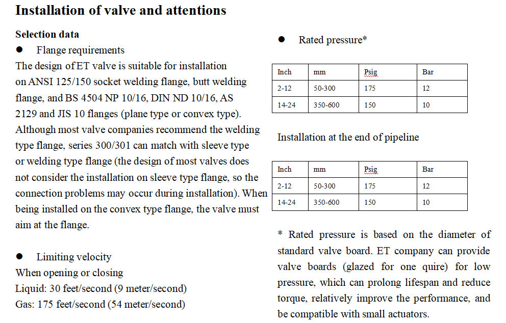 Installation of valve and attentions